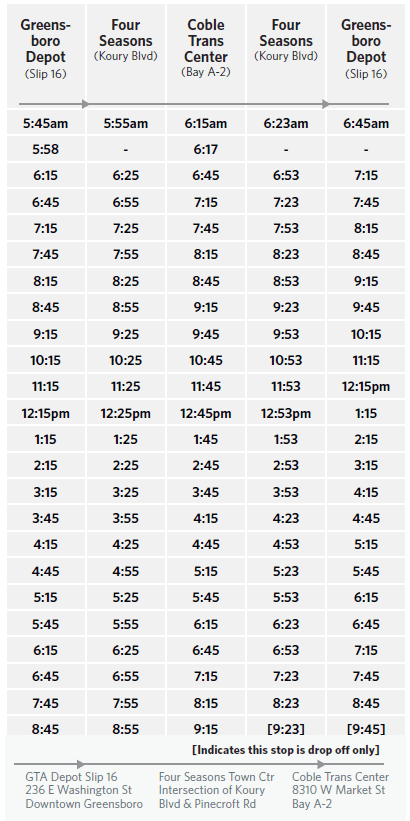 - Need Service to Kernersville? View the Kernersville Shuttle Schedule.